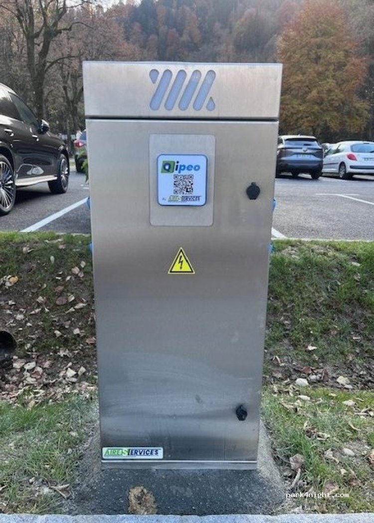 aire de services spécifique aux camping-cars comprenant (eau potable et toutes vidanges d'eau) une borne électrique avec 4 prises. ? INTERDICTION d y passer la nuit (la police municipale contrôle régulièrement)le stationnement est toléré pour 2heures afin de recharger en électricité et de faire toutes les vidanges. Mettez le disque "zone bleue" si vous voulez visiter St Gervais par l ascenseur. Pour les services scanner le QRcode et laisser vous guider par l application Qipeo