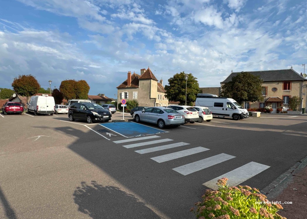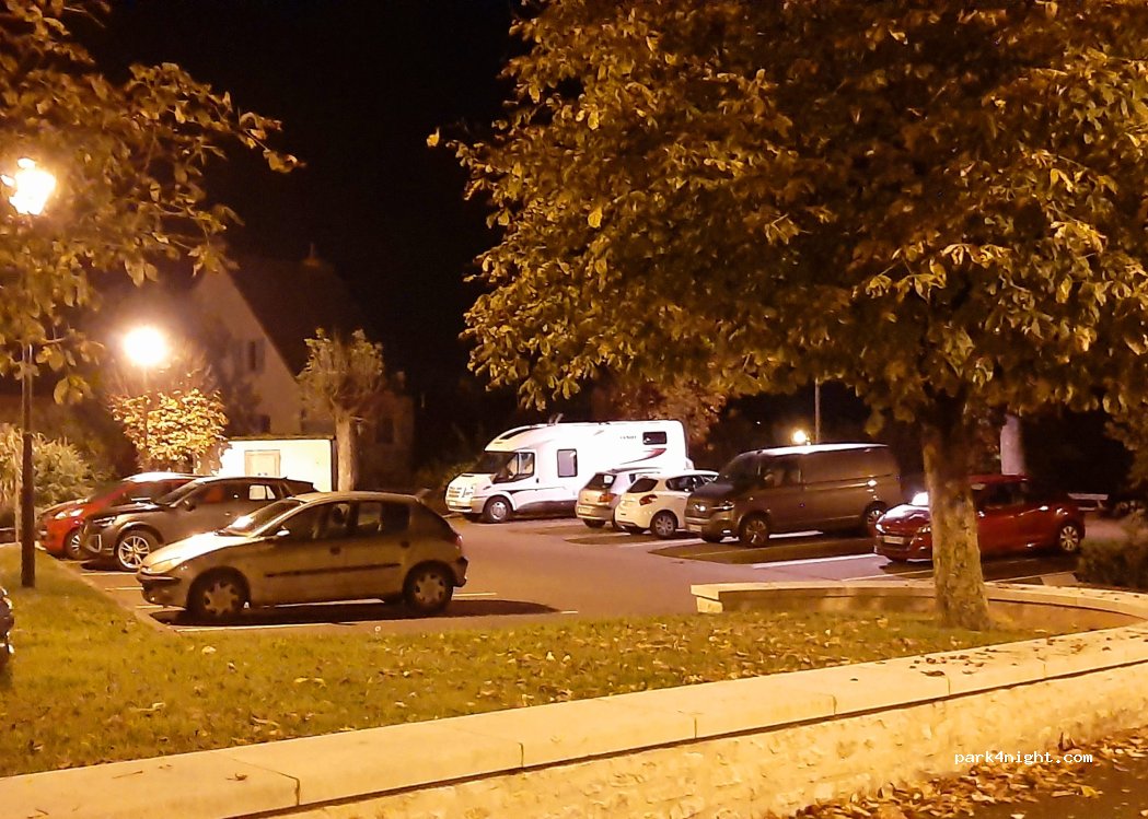 zeer rustig en bijna vlakke parking. snachts verlicht nabij een gezellig Frans dorpje met veel karakter.