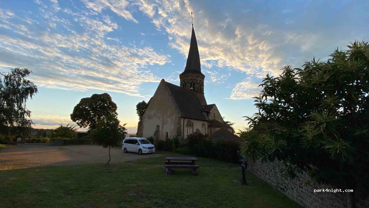 Emplacement idéal pour passer la nuit, le parking entre l'église et le cimetière est calme, une table pour manger. Très peu de passage dans le village, un toilette public très propre juste à côté du parking.
