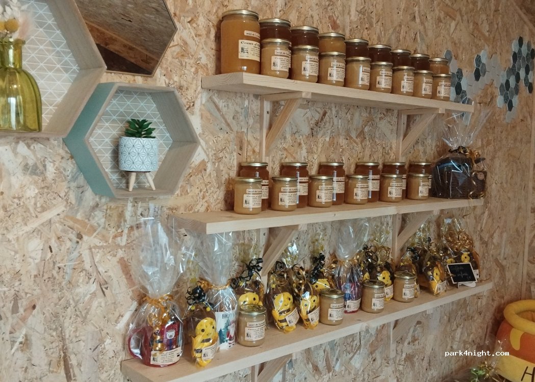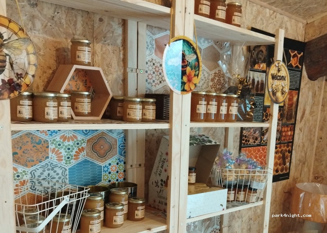 l'endroit est joli au milieu des ruches, le terrain est relativement plat. en bord de route où certains se font plaisir... Nous avons juste croisé la propriétaire 30s en arrivant. nous pensions revoir quelqu'un le soir ou le lendemain pour acheter du miel, cela n'a pas été le cas, personne au téléphone, pas de réponse non plus au sms dommage. il n'y a pas d'horaires affichés à la boutique.