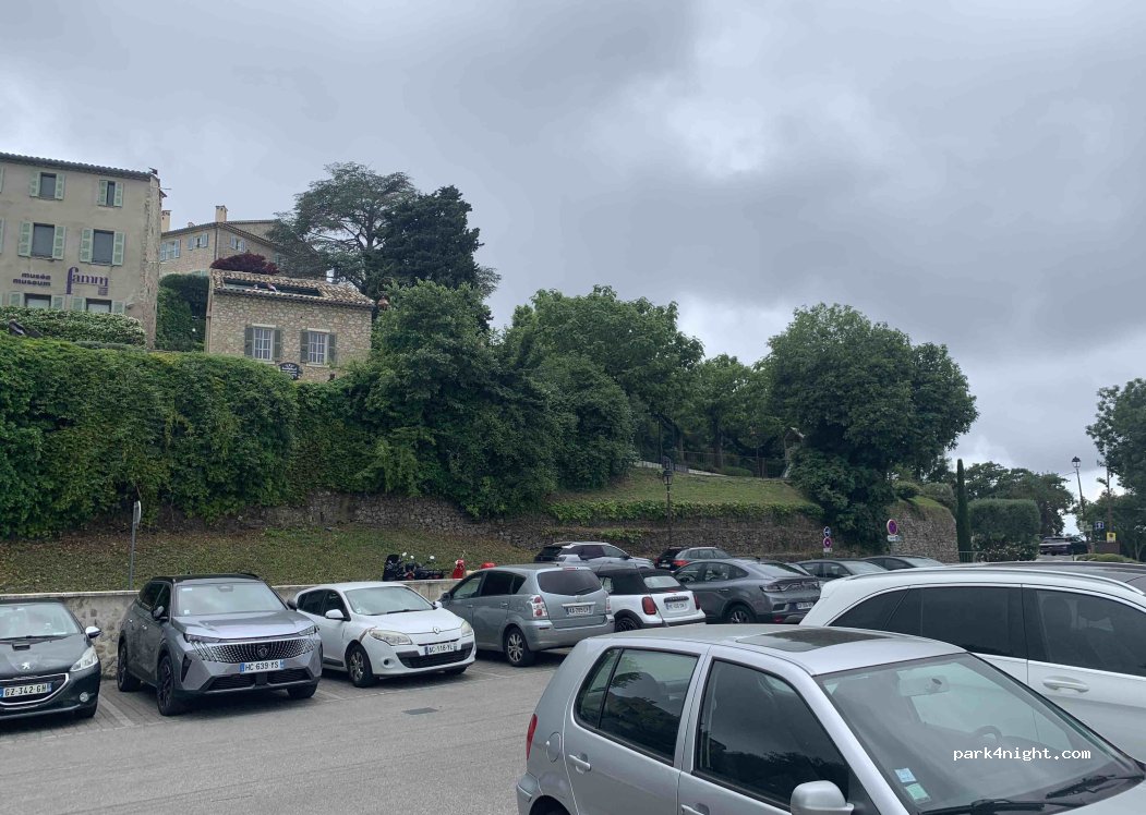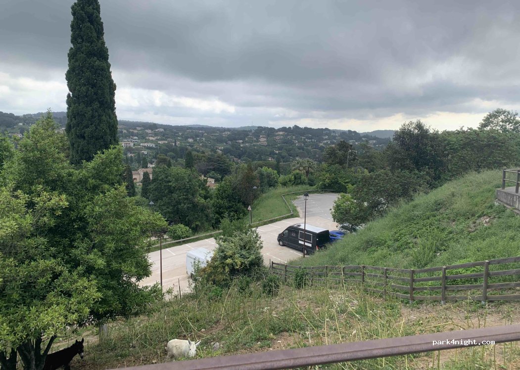 Aire de stationnement gratuite au village de Mougins, toilettes propres à l'entrée du village