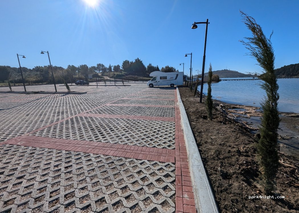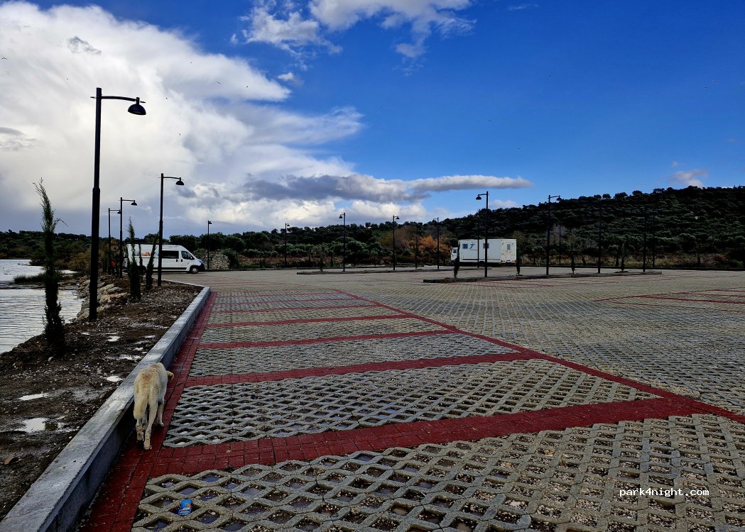 Parking bardzo duży, bezpłatny, na miejscu można podziwiać flamingi oraz przejść pomostem na wyspę gdzie znajduje się klasztor. Spędziliśmy tutaj noc. Było spokojnie i cicho. Miejscowi przyjeżdżający tutaj parami po 22:00 już wyjeżdżali. Miejsce godne polecenia.