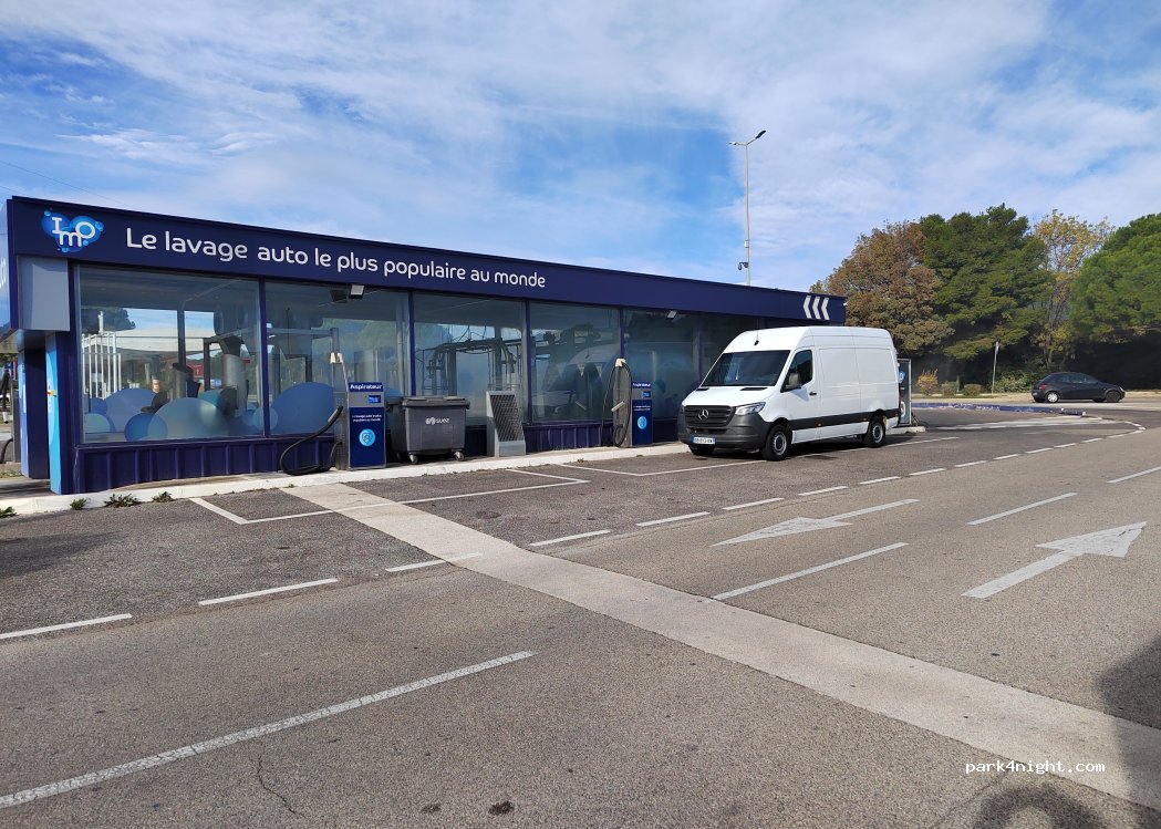door de hoogte beperking die bijna heel Zuid Frankrijk tijsterd is er in dit gebied weinig beschikbaar. de gangbare P4N locaties waren allemaal vol dus we zijn hier geland, gelukkig was er plek! we hebben een goede stille nacht gehad en voelde ons veilig in dit gebied, er waren nog 2 kampeerders met ons. geen service maar wel prullenbakken beschikbaar!