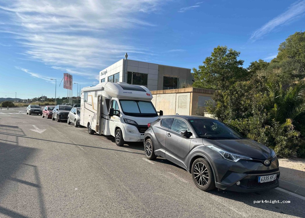 Straßenparken neben der Tierklinik in Sitges. Ruhig und kostenlos, wenn Sie nur einen sicheren Übernachtungsort brauchen. Wir blieben mehrere Tage, nachdem unser Hund vom Zug erfasst wurde, und überlebten. Tolle lokale Tierklinik, die auch Operationen durchführt und rund um die Uhr geöffnet ist.