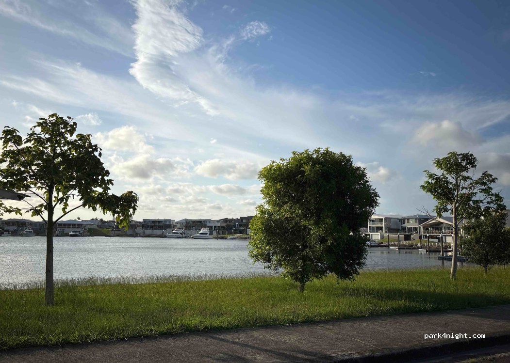 super spot pour une nuit. quartier de maison résidentiel avec une petite baie marina pour une belle vue au reveil. aucun panneau interdisant le camping.