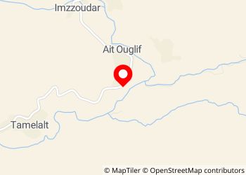 À 10 minutes à pied de l'épicerie/restaurant Jawharat, avec un très bon café (10 dh), du pain frais du village, des recharges téléphoniques et des toilettes !
