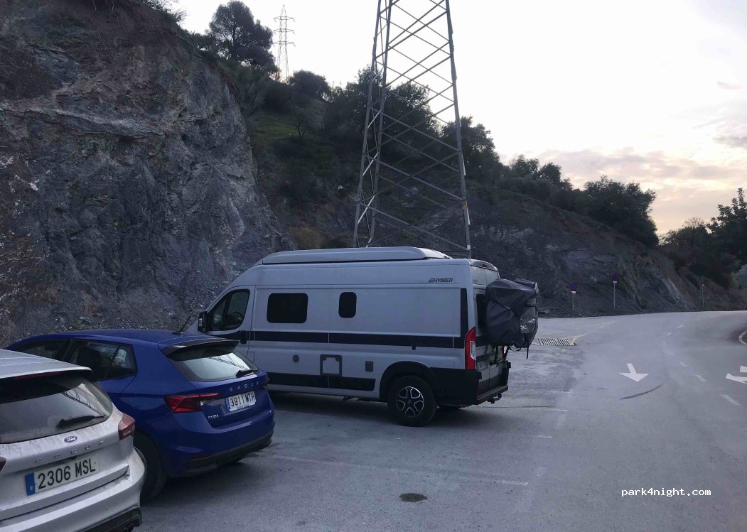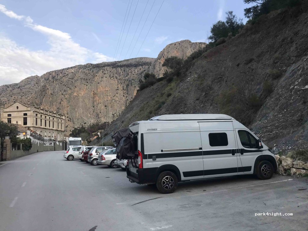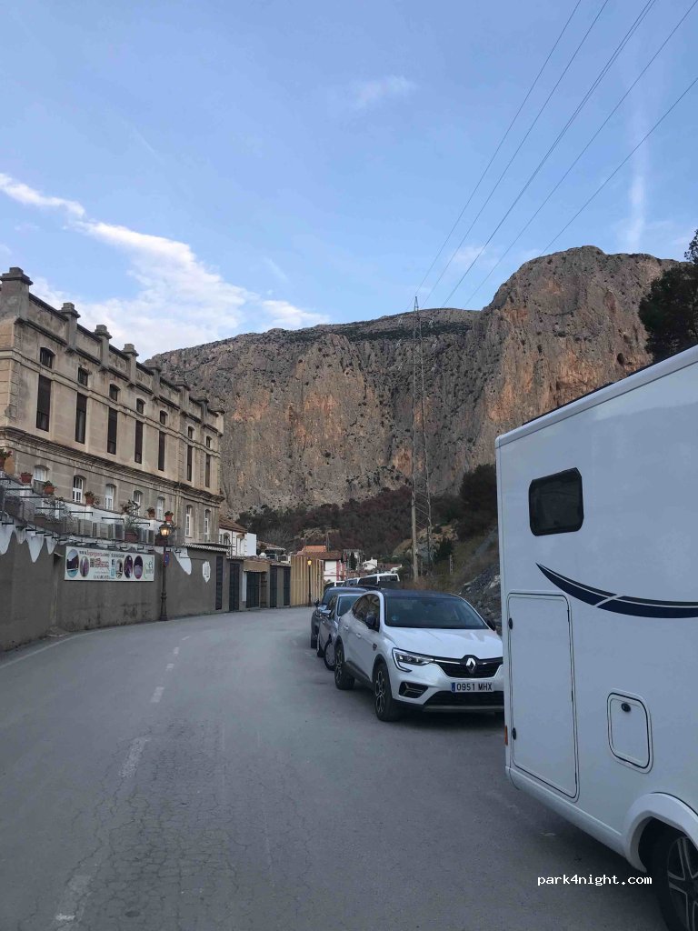 Parking in line for long motorhomes and in battery for 7 m or less. It is not very level depending on where you park. 2 minutes from the shuttle bus. Containers where the buses turn around. Quiet at night since at 7.30 am the buses start to pass. In the area there is no coverage of Movistar, O2, etc.