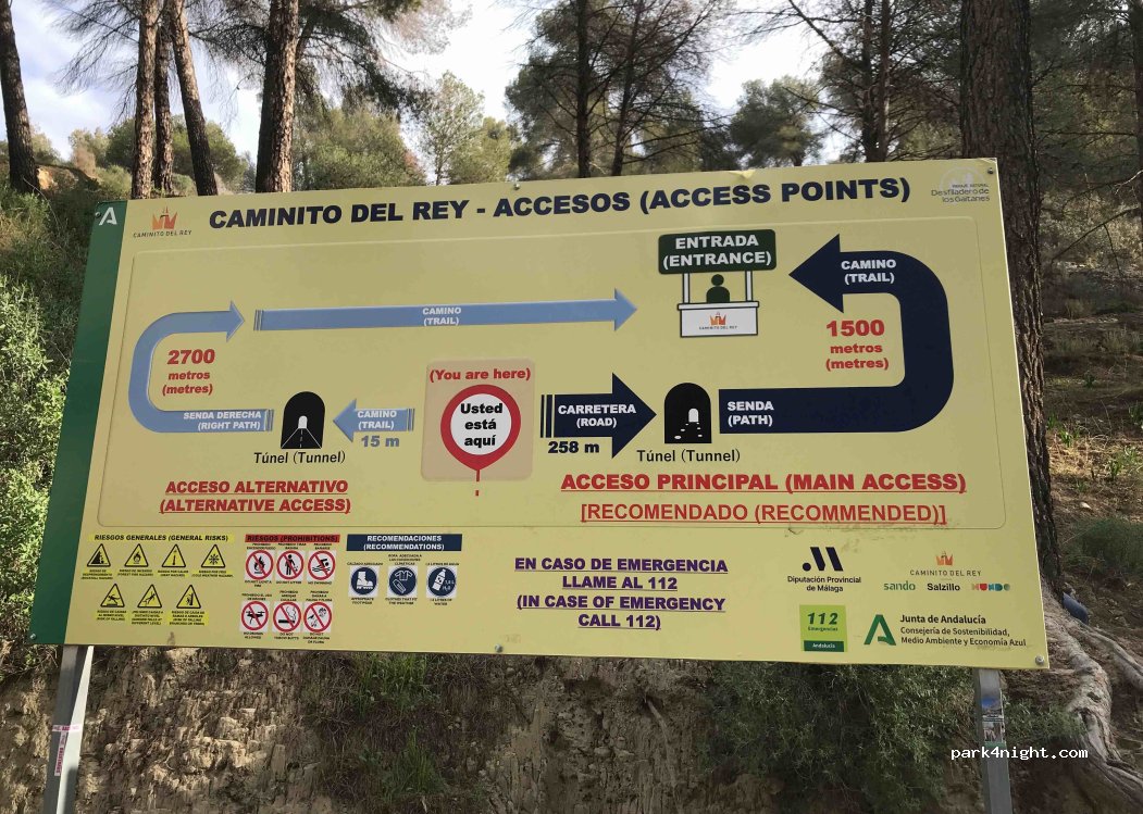 Buen lugar para aparcar y coger el bus que lleva al inicio de la ruta. Recomendable llegar muy temprano (Antes de las 8 am o por la tarde después de las 18 pm). Recomendable llegar por Ardales, mejor carretera.