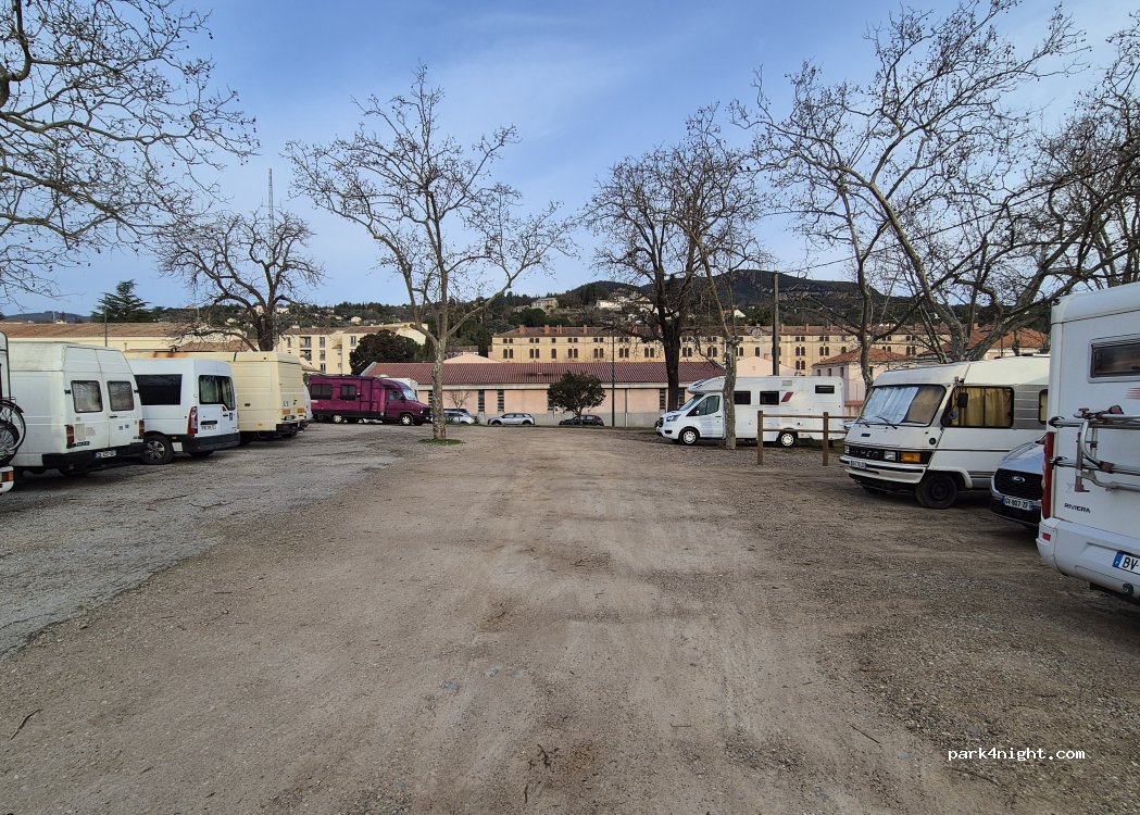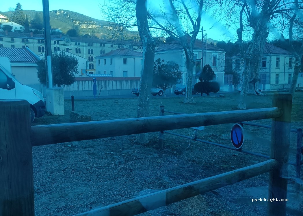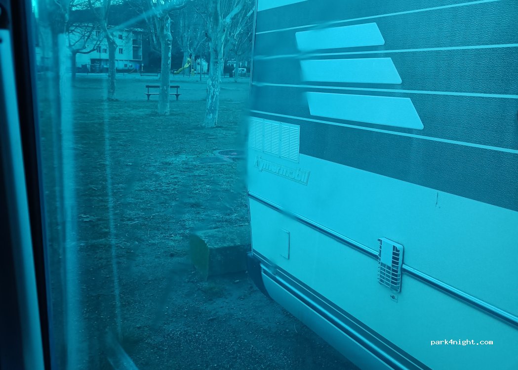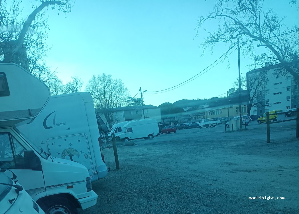 Aire gratuite réservée aux camping-cars . espace à l'ombre attenant au parc . Pas de services . nuit tranquille.