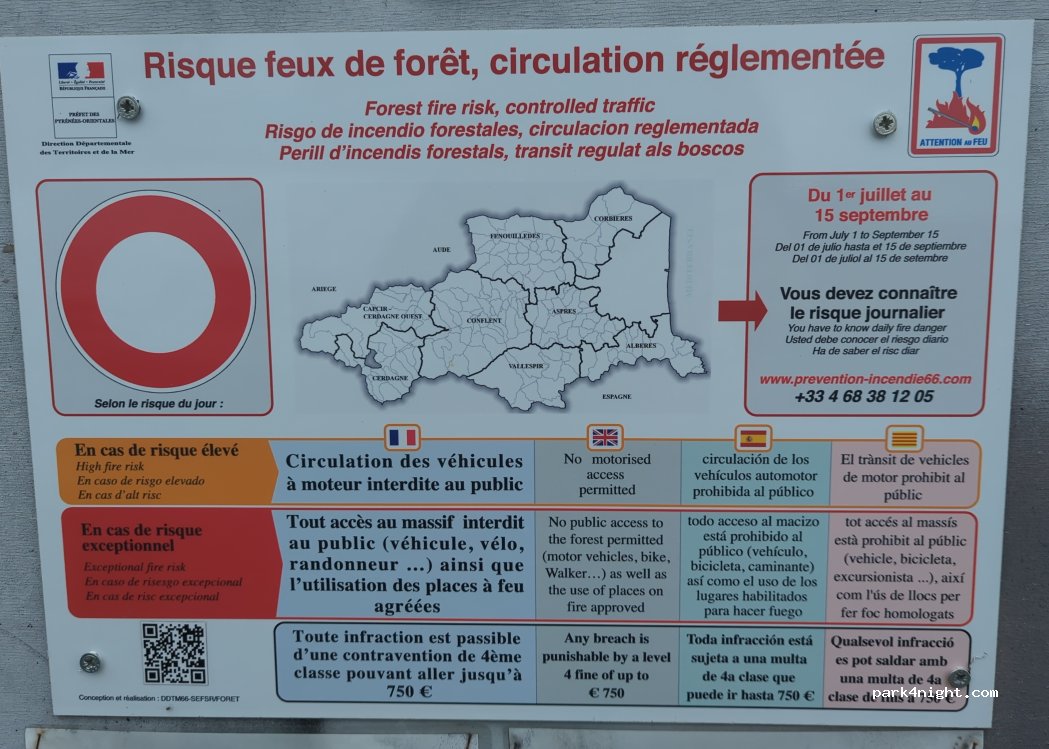 Parking access is prohibited from 1st july until 15th september because of forest fire risk