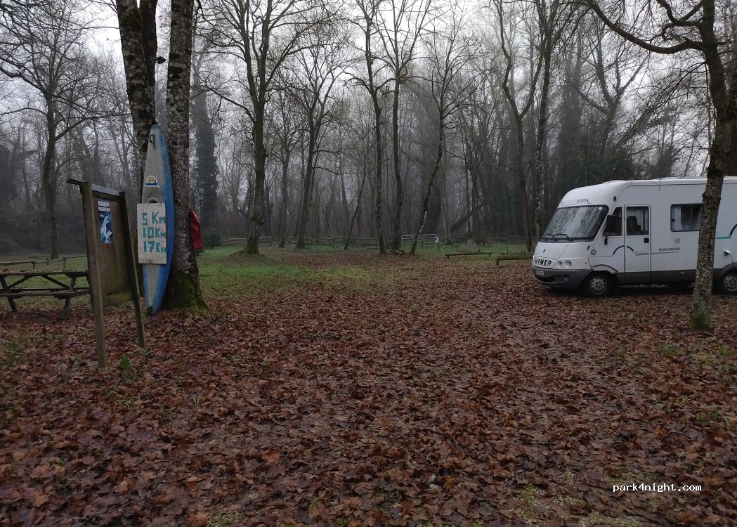 aire bien entretenu, au milieu des bois pas de réseau tnt ,entrée délicate pour les plus de 7 mètres et le prix de 15,42 euros un peu cher vélo ou autres indispensable car rien autour