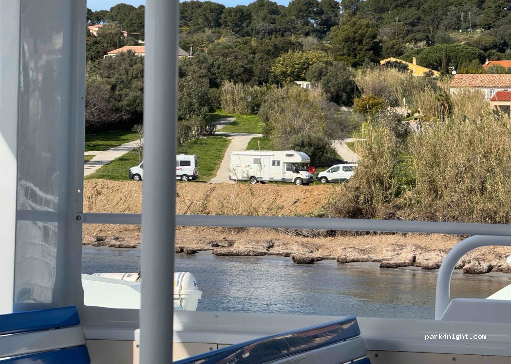 Bellissimo parcheggio fronte mare a 100 metri dall’imbarco del traghetto per isola Porquerolles! Siamo stati 2 notti (52€) davvero un posto bellissimo! Di giorno molto affollato, alla sera si svuota, addirittura volendo si può cenare fuori dal camper tanto non c’è nessuno! Consigliatissimo!