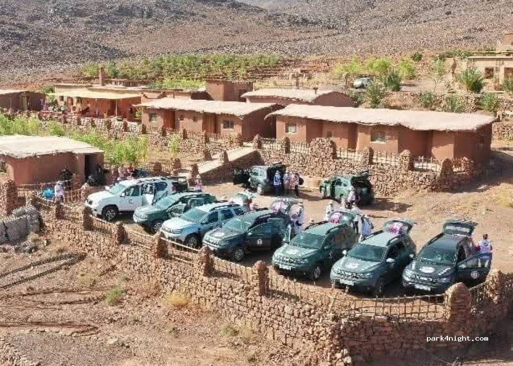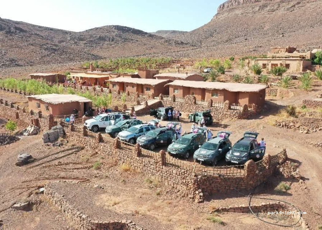 Havre de paix au fond d'une oasis L'accueil est extraordinaire, le personnel au petit soin, les douches bien chaudes. possible de restauration sur place. La route jusqu'à l'oasis est goudronnée mais l'accès au bivouac se fait par une piste de 2 kms. 4X4 ou vans seulement.