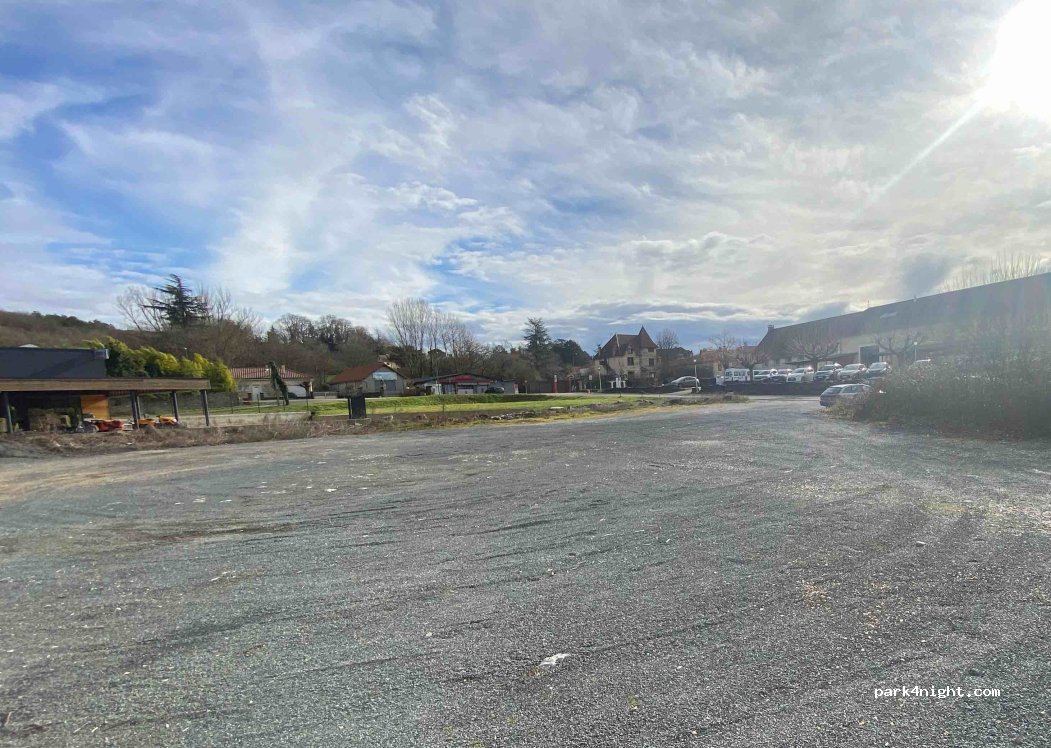 Gravelled area next to a SPAR store and a medical center. This allows you to take a break at lunchtime or spend the night.
