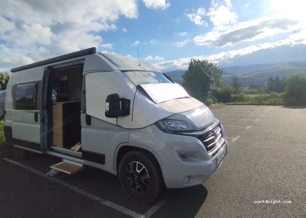 On the church square, continue in the direction of the viewpoint at 100m. Parking for around twenty spaces without WC or garbage cans, possible to spend a night with a beautiful view of the valley.