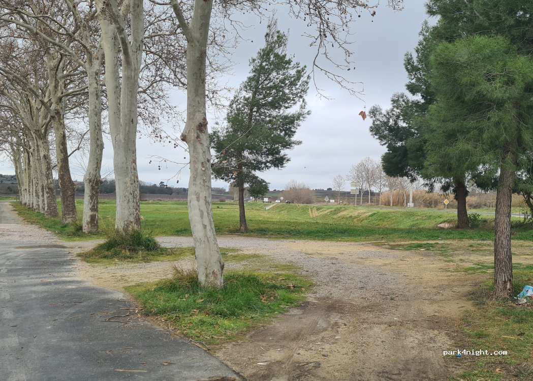 Petit parking, non loin de la route, sous quelques pins et platane. top pour une halte rapide