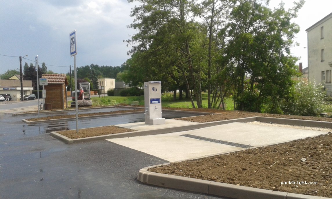 Une aire de services avec 2 places de stationnement. Le long de la route. Accès facile pour les vidanges. Tous services (eau, vidanges et électricité) gratuits.