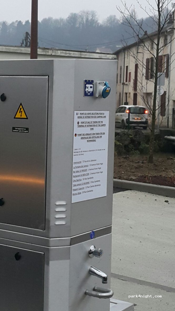 Used the services after buying jetons at the bakery. For night stay it is very close to the road, I would not like it.