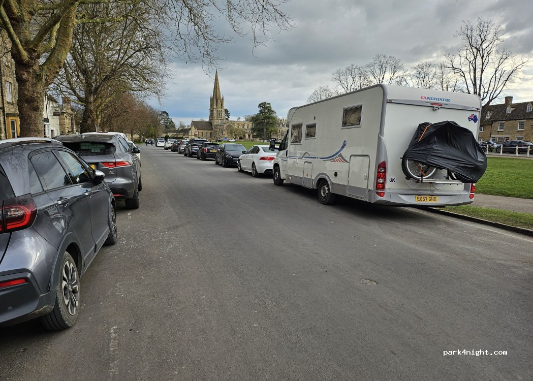 Strassenrand-Platz an einer relativ ruhigen Strasse am Rasenplatz vor der Kirche. Geschäfte und Gastronomie in fußläufiger Nähe. Tagsüber für 2 Std., ab 18:00 -8:00 frei. Sonntags ganztägig frei. Wir haben eine ruhige Nacht verbracht.