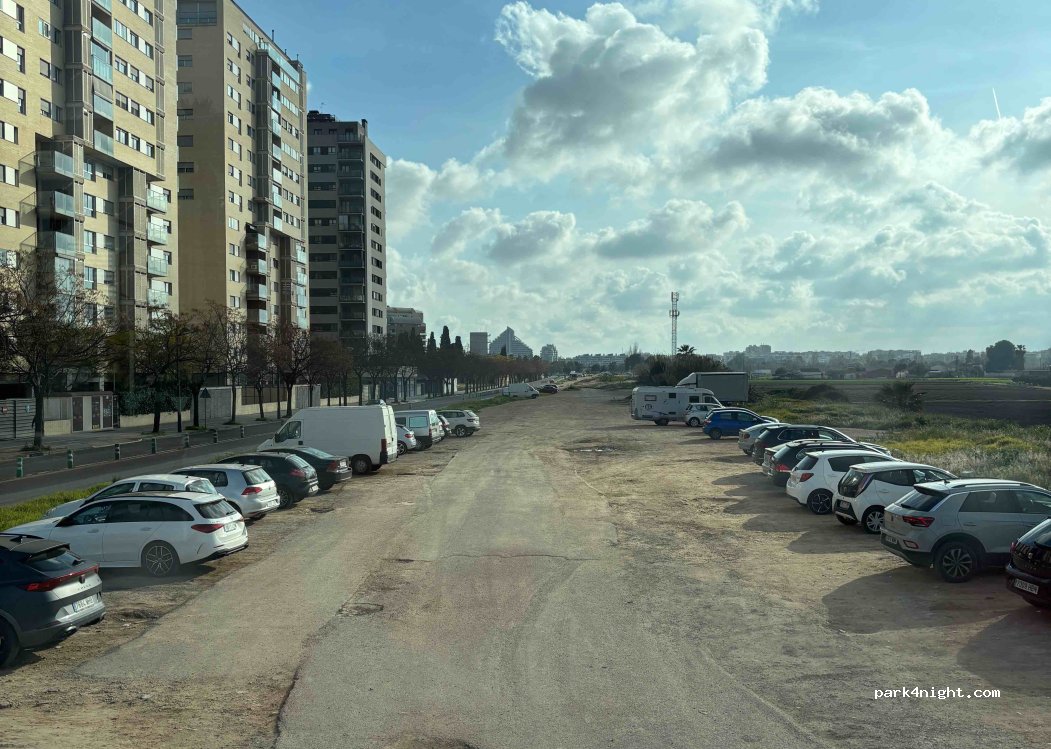 Aparcamiento a unos 10-15 minutos a pie desde la parada 14 del autobús turístico (autobús rojo). Nos costó encontrar aparcamiento en Valencia y vimos esto en el autobús.