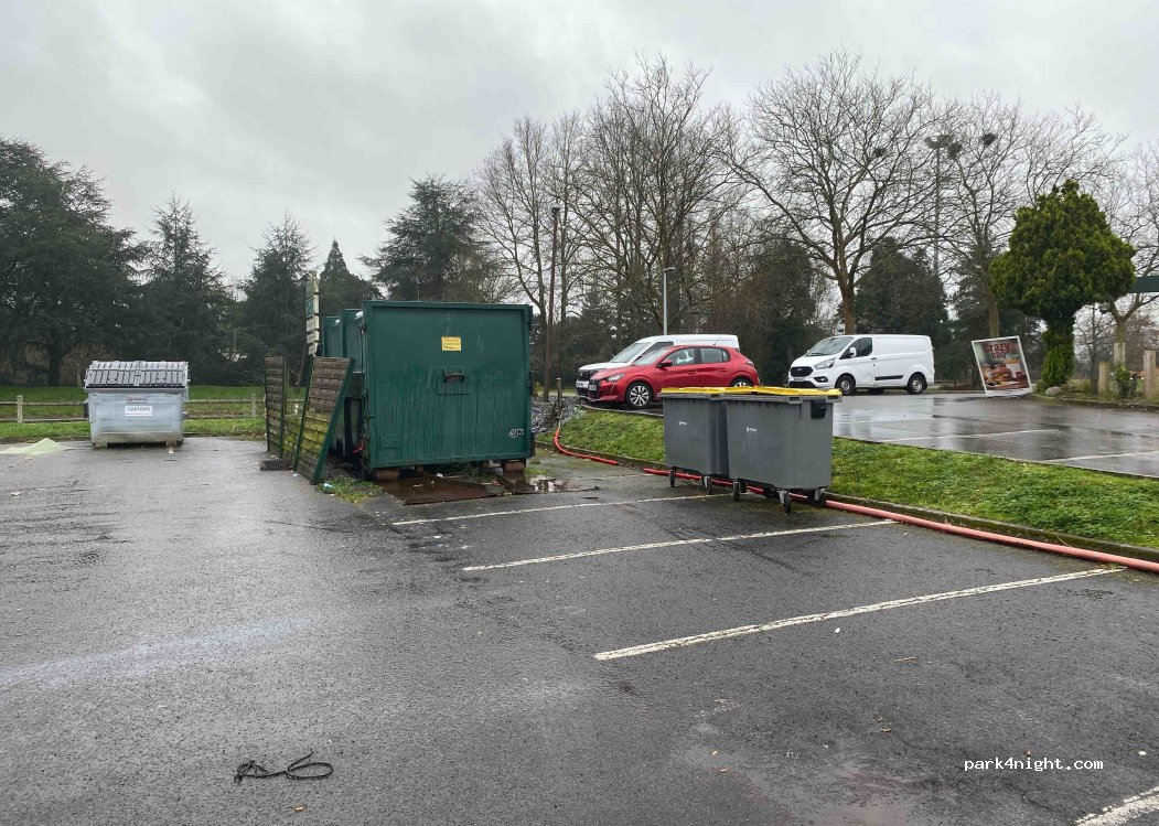 Free parking, with plenty of space and security, supermarket and McDonalds.