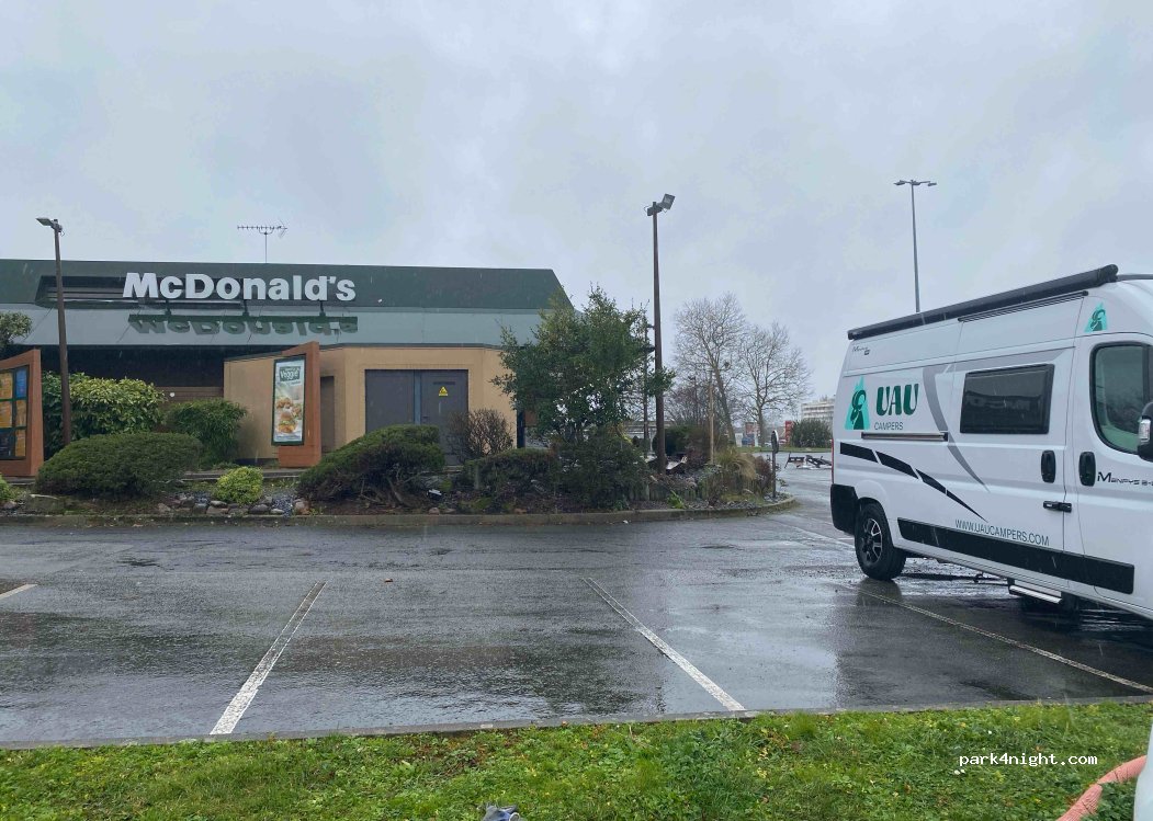 Kostenloses Parken mit viel Platz und Sicherheit, Supermarkt und McDonalds.
