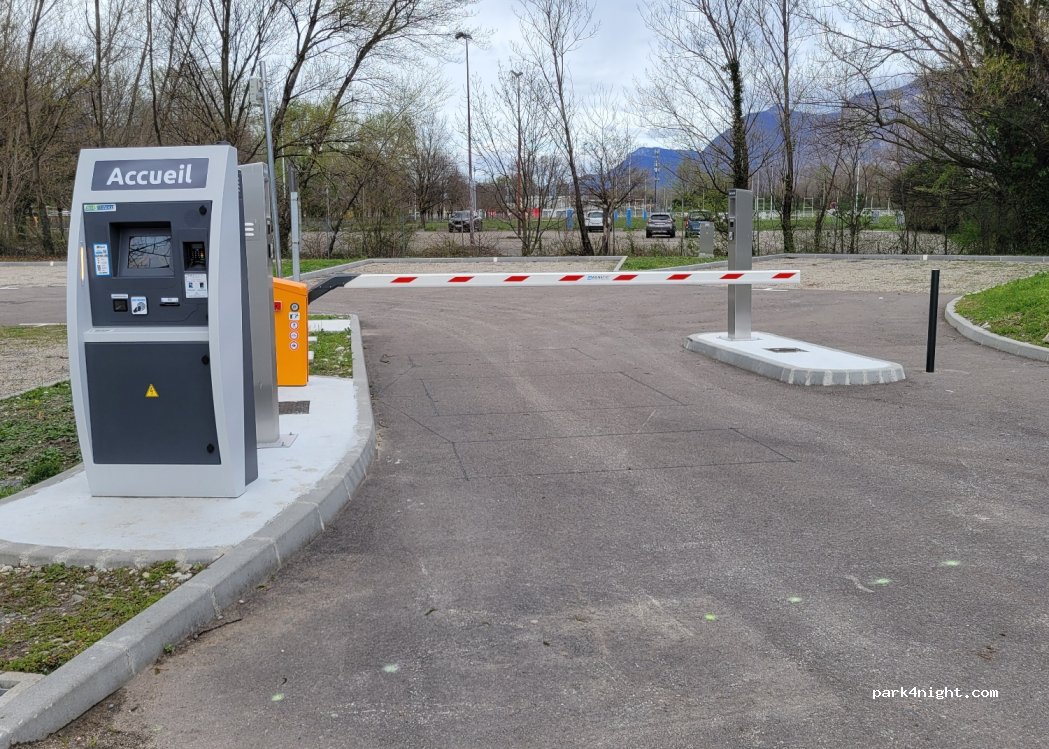Uusi matkaparkki kauniilla paikalla. Sisäänmaksu ehkä vähän haastava. Kadun varrella on huoltopiste josta saa myös vettä. Tosin me, eikä muutkaan, ole vielä keksineet miten veden saa maksettua?? Grenobleen oääsee parhaiten pyörällä. Kaunis kaupunki.