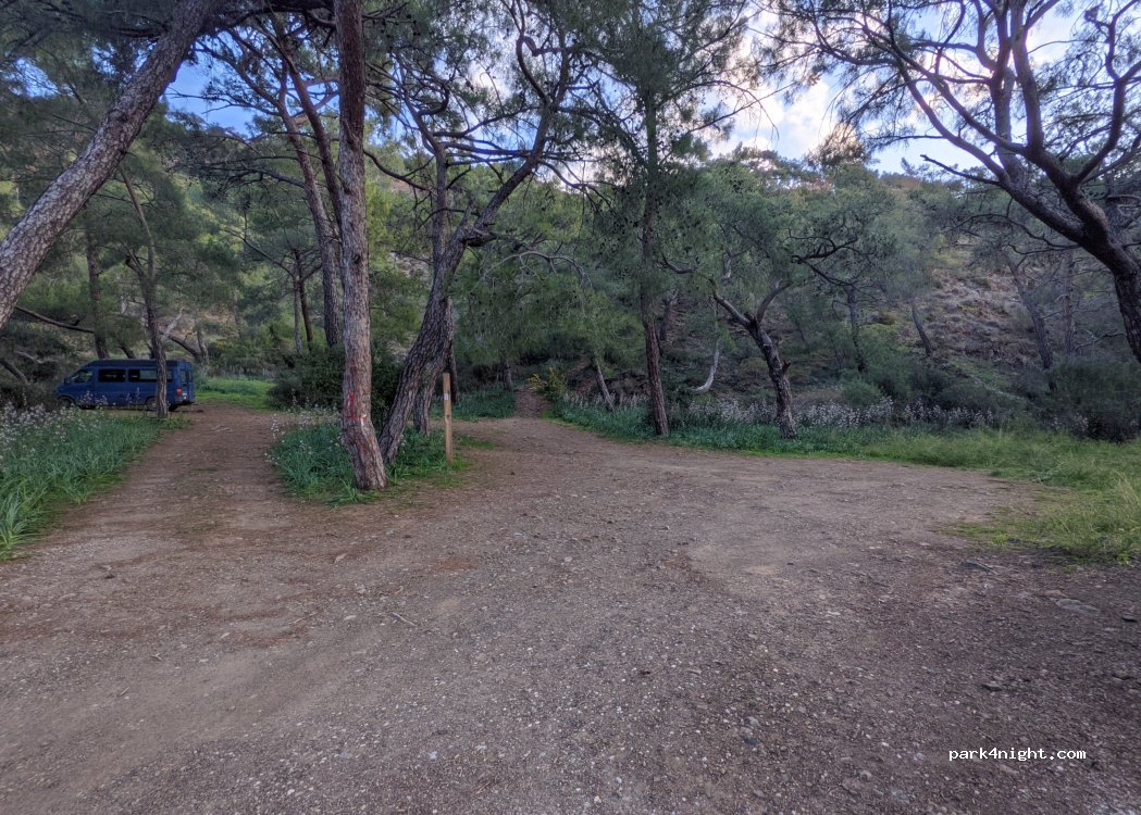 Parking lot for coastal hiking trail. The place is nothing special, but we spent a quiet night here in February. Close to the chimaera flames.