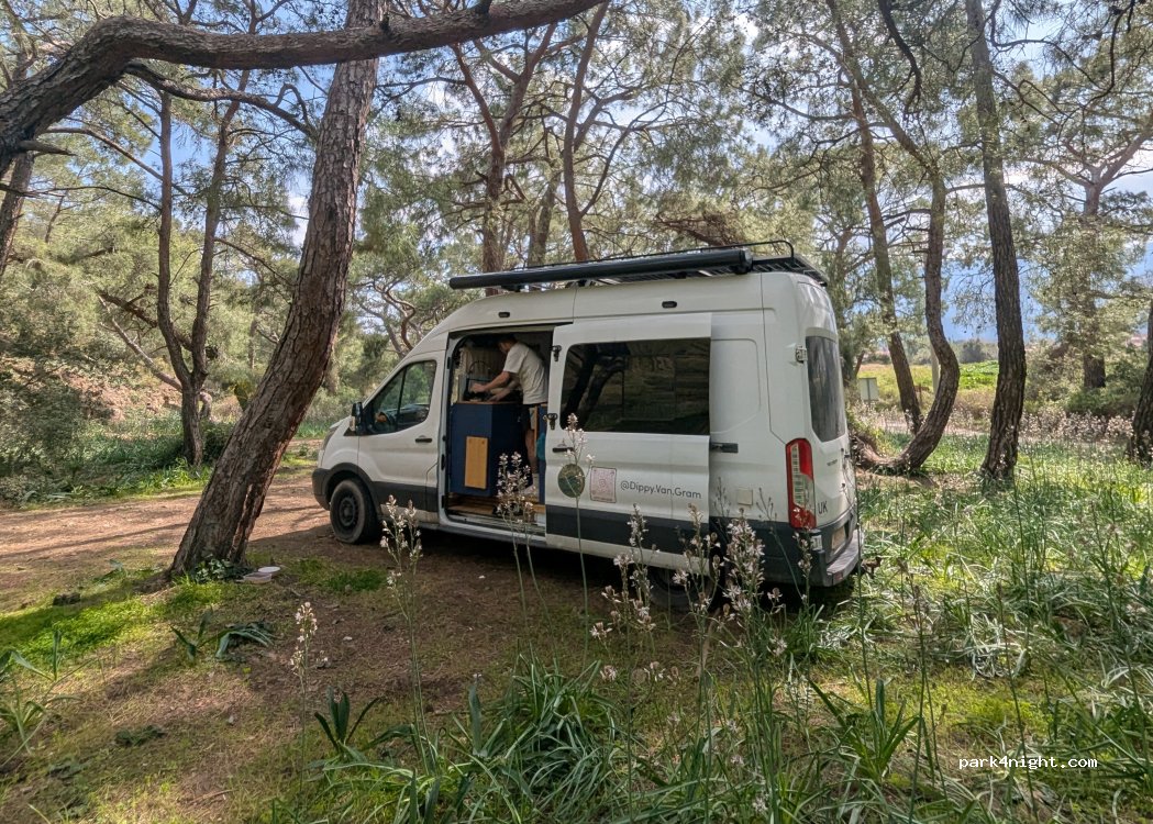 Parkplatz für Küstenwanderweg. Der Ort ist nichts Besonderes, aber wir haben hier im Februar eine ruhige Nacht verbracht. In der Nähe der Chimärenflammen.