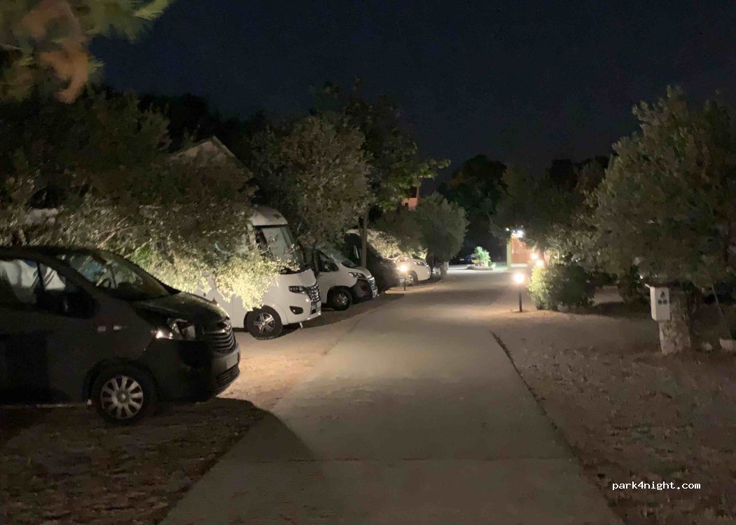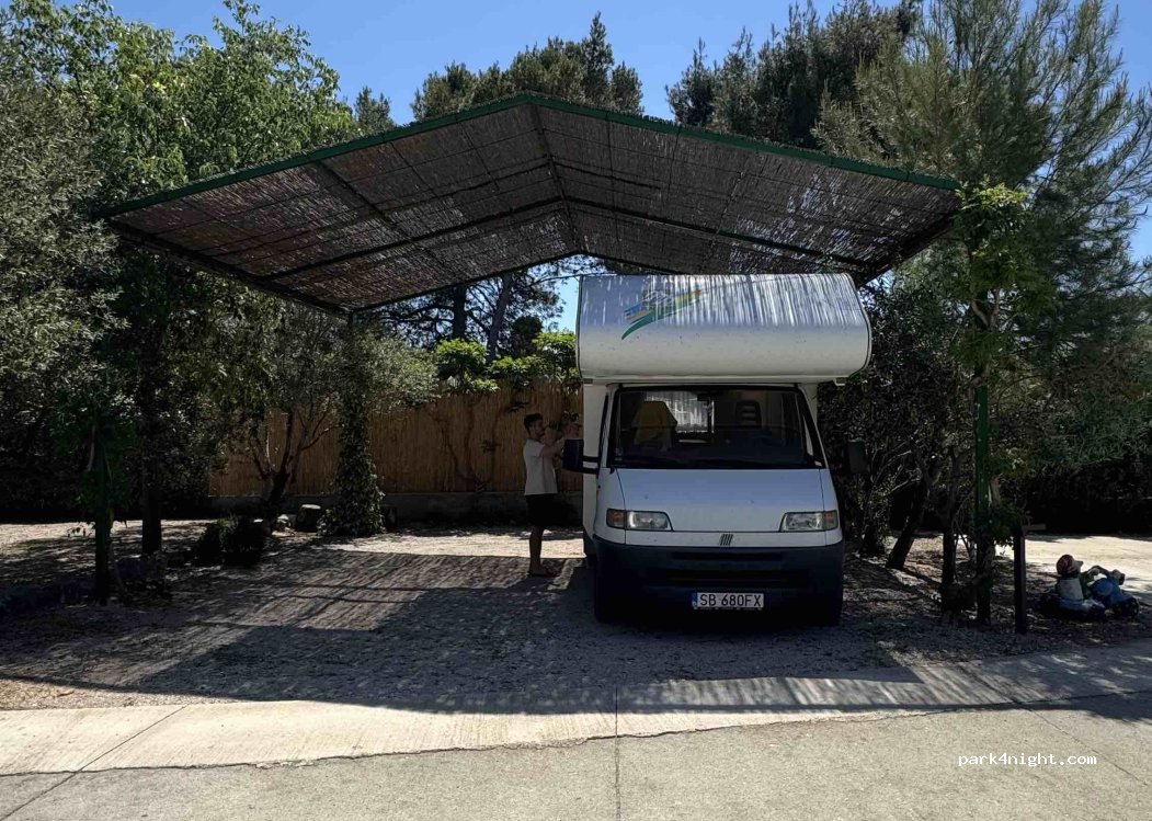Very nice park. One of the best wet found in Croatia, it's a small park but with enough shade, clean toilets and showers, nice utilities and very friendly owners. You can also use their outside tables, fridge and freezer for free. 150 meters from the beach and lots of great restaurants.