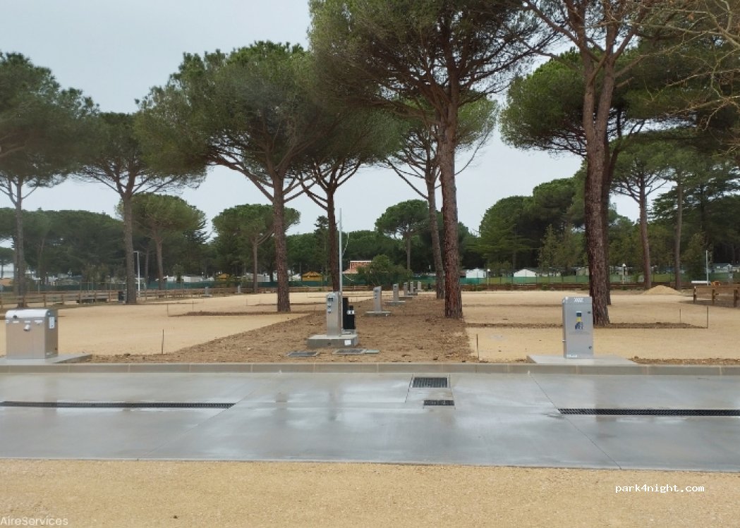 Aire facilement accessible ,propre,sécurisé, tous les services fonctionnent il y a aussi des bornes à moustiques..proche de la mer et des commerces avec une belle piste cyclable,nous avons passé une nuit au calme belle étape dans notre voyage.