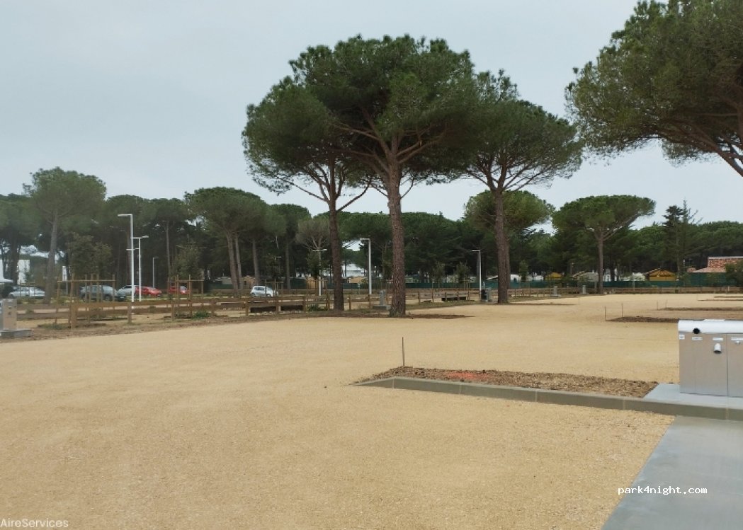 emplacement petit mais ça fait l'affaire. proche de plage et du port. manque une douche et cette aire serait au top. peu de place a l'ombre