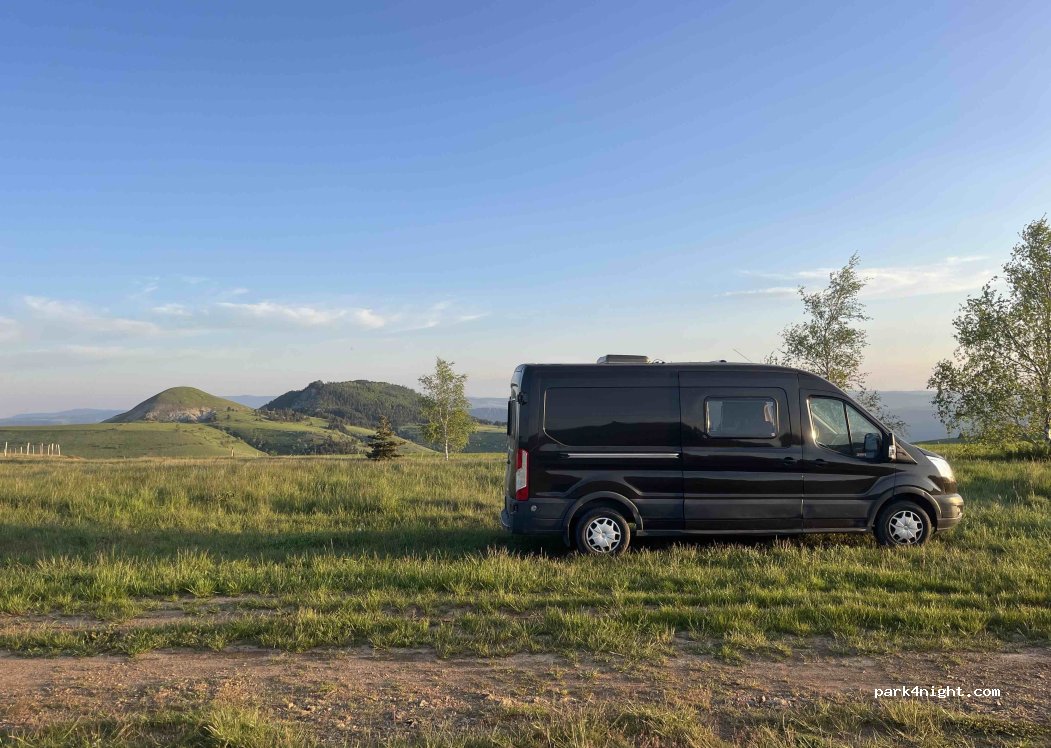 Terrain plat, fréquenté en journée par les randonneurs. Nuit très calme, vue splendide et léger vent qui rafraîchit le camping-car avant d’aller dormir.
