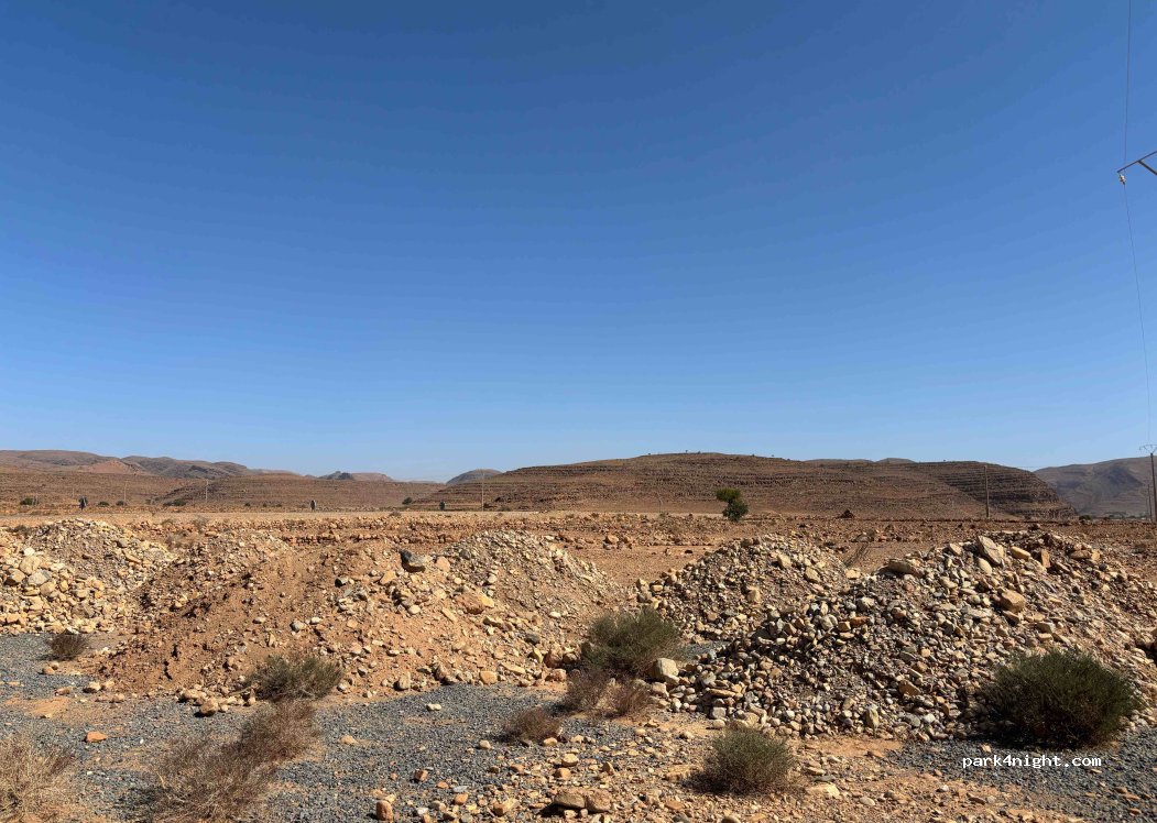 Große Fläche am Rande eines völlig ausgetrockneten Wadis. Kein Service. Wir haben dort 2 ruhige Nächte in 2 Schlafzimmern verbracht. Windig, aber sehr ruhig. Steinhaufen lassen darauf schließen, dass dort bald Arbeiten durchgeführt werden könnten.