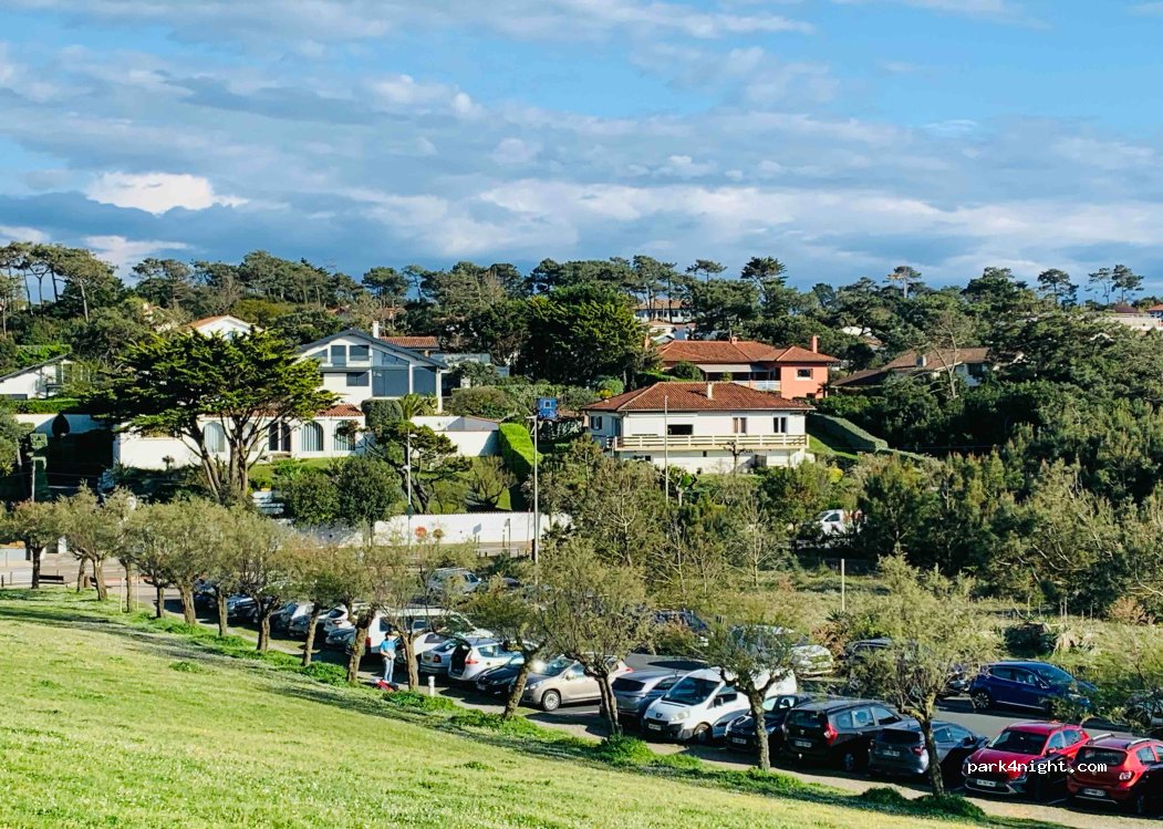 Stationnement au bord du boulevard de l’océan, à 100 m de la mer. Gratuit du 30/10 au 1/4, adapté aux camping cars de grande longueur