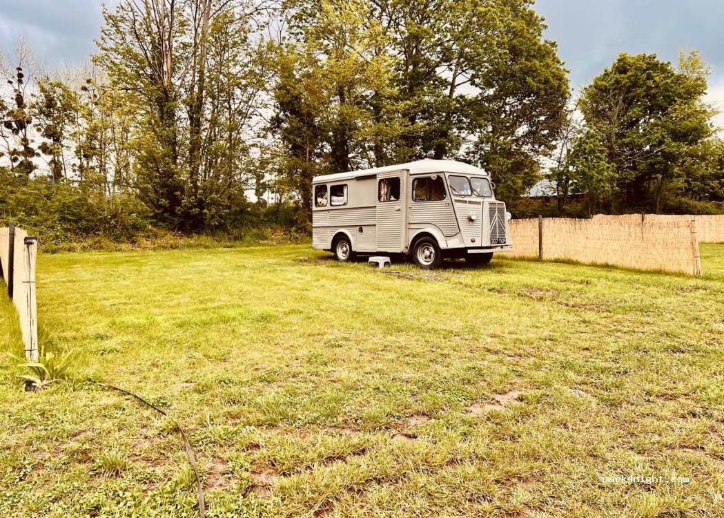 petit endroit à la campagne plus que sympa!! calme assuré, emplacement spacieux, sanitaires et douche au top, rien à envier au camping! propriétaire accueillant,vente de jus de pomme, œufs frais, terrines... merci et si nous repassons dans ce coin, c'est sûr nous ferons partie de vos hôtes.