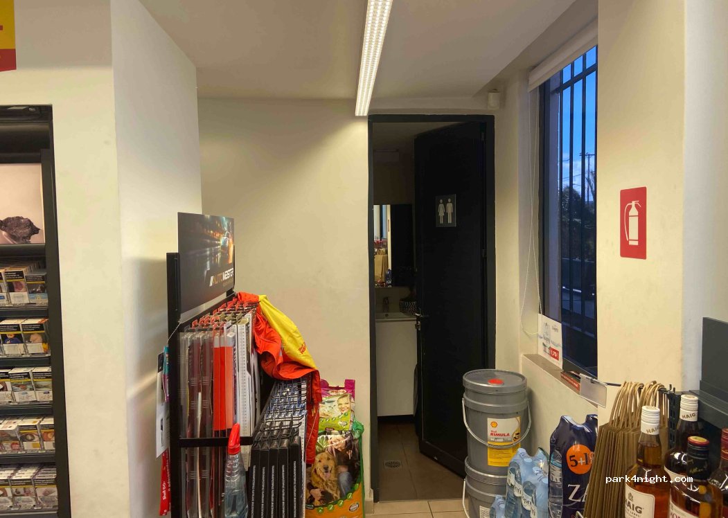 Gas station with AD-Blue pump. Large grounds. Easy access and exit. There's a restroom in the shop. Large car wash with a pit, but you have to ask.