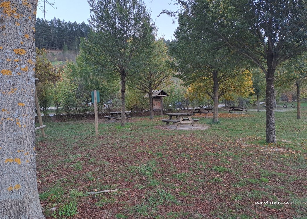 Très bel endroit, calme pour 7 € + 2 € par personne pour une nuit. Tous services, mais sur terrain pentu et caillouteux. Beaucoup de chemins de randonnées.