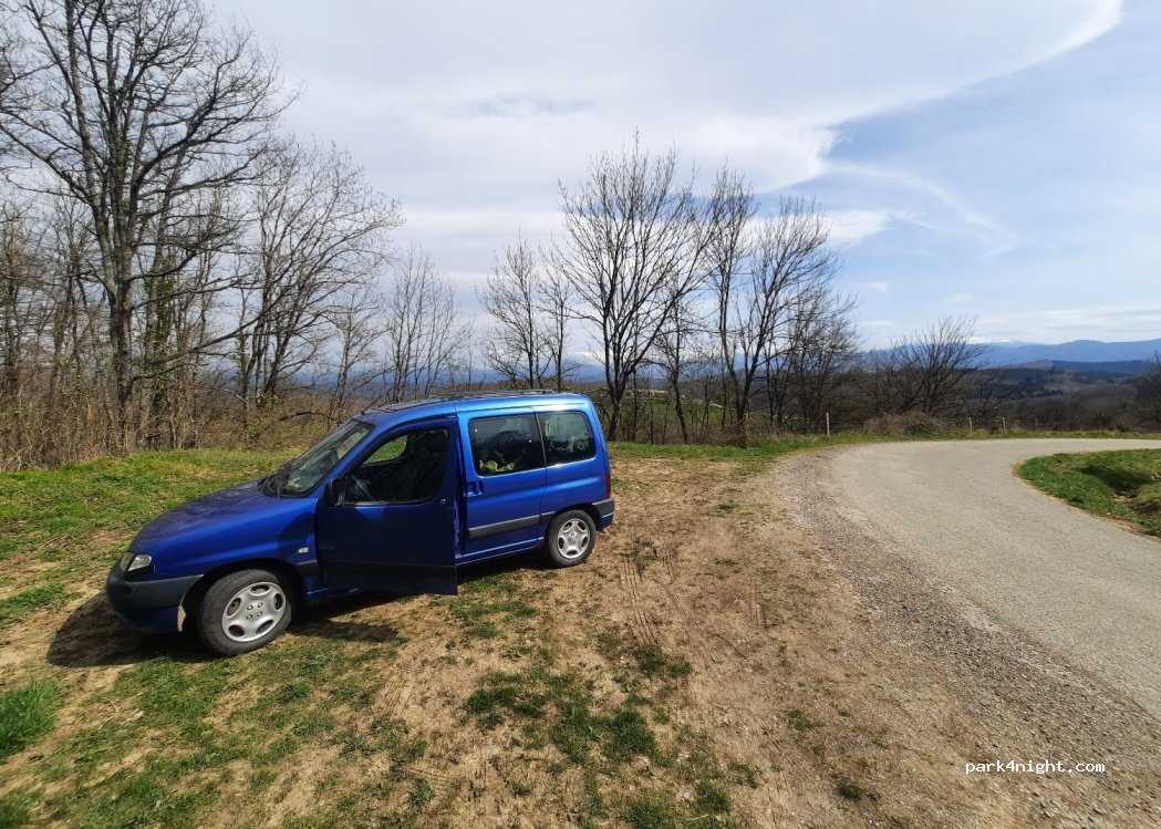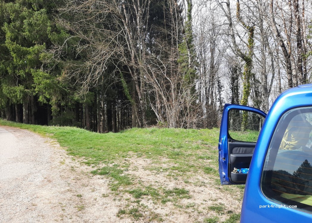 Platz entlang einer sehr ruhigen Straße neben dem Wald. Bedenken Sie jedoch den Wind.