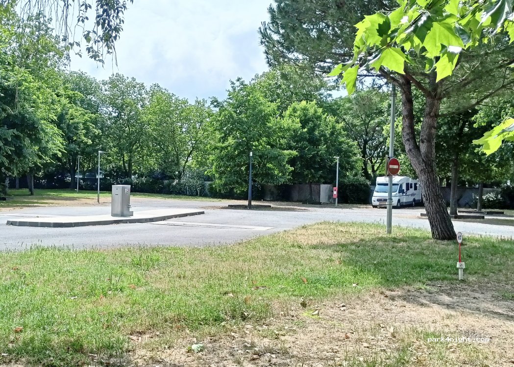 Pour une aire de camping-car, nickel. Ombragé ou pas selon vos souhaits. Emplacement spacieux. Seul bémol : bornes electriques en plein soleil et prise d'assaut.