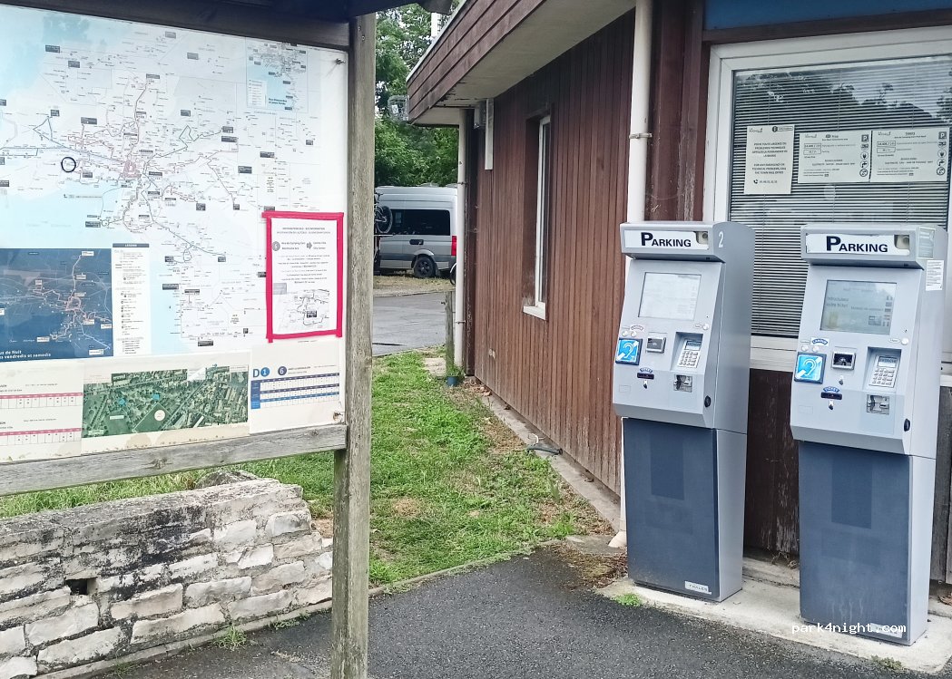 Aire de services payante 12€/jour avec eau, électricité et vidange. Aire qui remplace tous les parkings. Peut-être un peu chère.