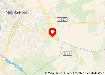 Meerdere plaatsen aan de ingang van Milly-la-foret; geen schaduw, naast drukke doorgangsweg. Water in/uit.