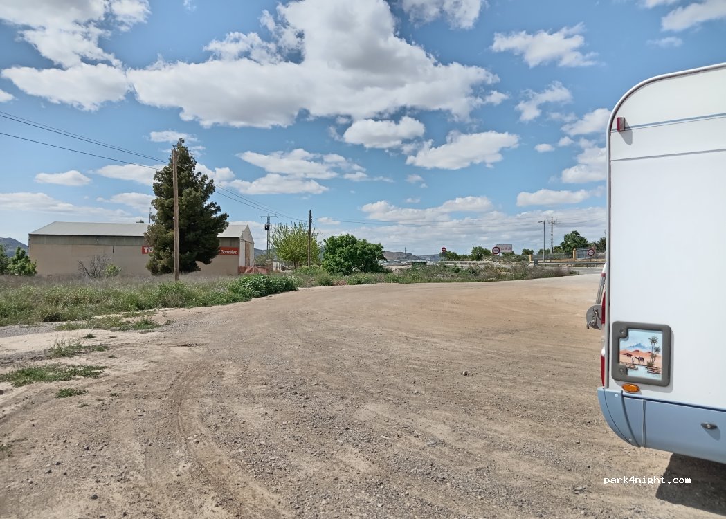 Aparcamiento de tierra justo antes del pueblo accesible para autocaravanas de todos los tamaños.