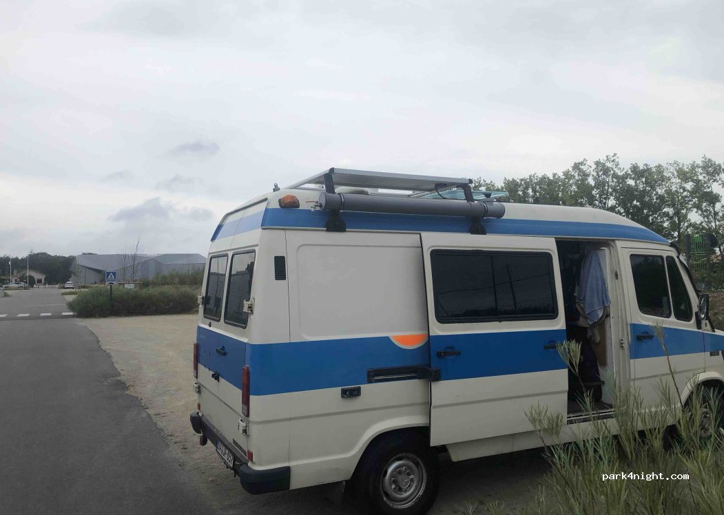 Good parking spot to spend the night. Arrived late and there was a wedding going on in the big hall at the beginning of the parking lot but it didn’t bother us. A lot of commotion during the day at the tennis court right next to it. There are public toilets on the tennis club parking lot and garbage bins. Good place for a quiet night also during the weekend.