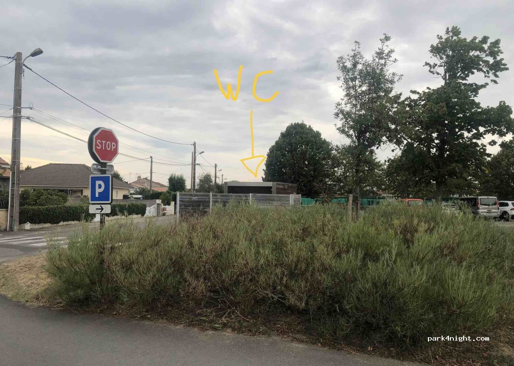 Un lieu paisible et très pratique, parking du club de tennis et parking le long des installations, sanitaires publics à nettoyage automatique avec lavabo. Parfait, on le recommande pour une nuit au calme.