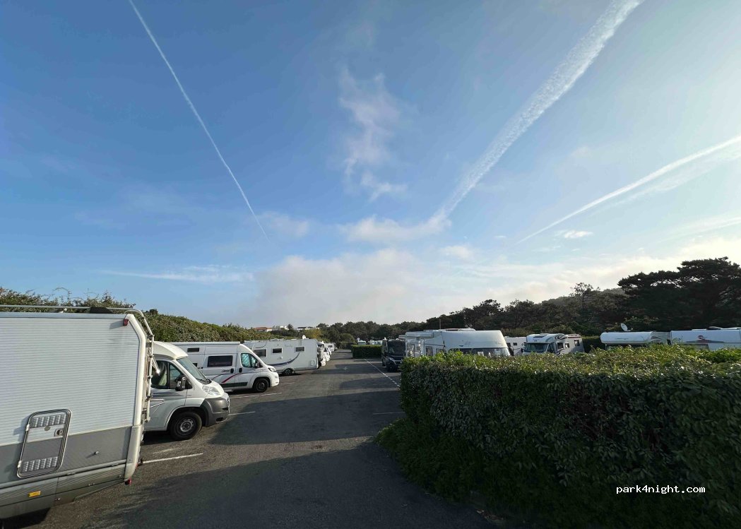 Le top: Parking à 200m de la plage. Piste pour vélo et piéton pour courir. Petit bar resto bon en bas. Possibilité de rester 3 jours. Le flop: place pas très grande, vidange collé à la barrière qui fait entrée et sortie donc galère sur les heures d’arrivée … une seule barrière qui fait les 2 donc souvent la queue.