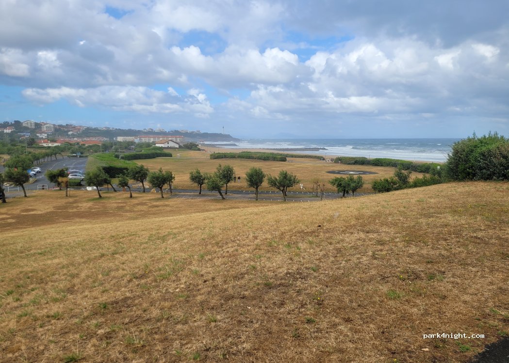 Nous sommes restés 3 jours en van. Il est possible de rester 24 / 48 ou maximum 72h. Pour 13,7 par nuit (avec la taxe de séjour). Accès direct à la plage (vue incroyable). Plutôt calme pour dormir. Les toilettes publics à côté de la plage ont été apprécié étant en van. Arrêt de bus à 5min pour aller au centre de Biarritz en 20min.