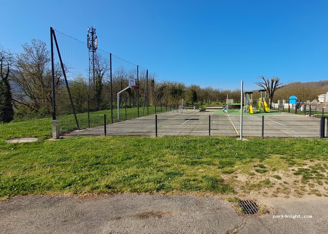 Location for a break or an overnight stay with water and games above a departmental road.