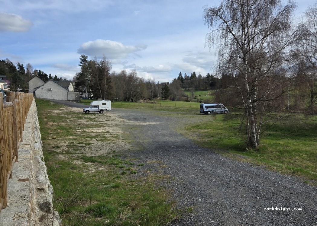 En plus du parking que la mairie d'Aumont Aubrac a prévu pour les camping cars sur les hauteurs du centre ville, elle vient d'ouvrir un grand parking non goudronné près de la gare. Ce n'est pas un parking réservé aux camping cars, mais il est prévu pour les longues durées (donc on peut y passer la nuit sans problème) et il y a pas mal de places. Il y a la voie ferrée à côté, mais il y a très peu de trains qui passent. Cela peut rendre service pour se garer et visiter le beau village ou pour y passer la nuit quand l'autre parking est complet.