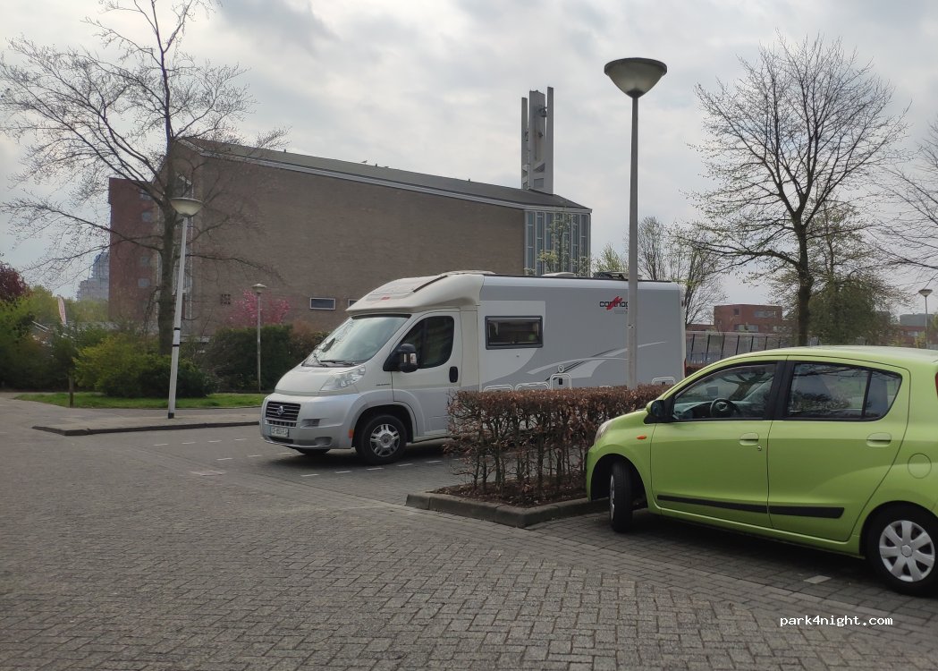 Parking in a housing project near a church, good for visiting the city center and doing some shopping.